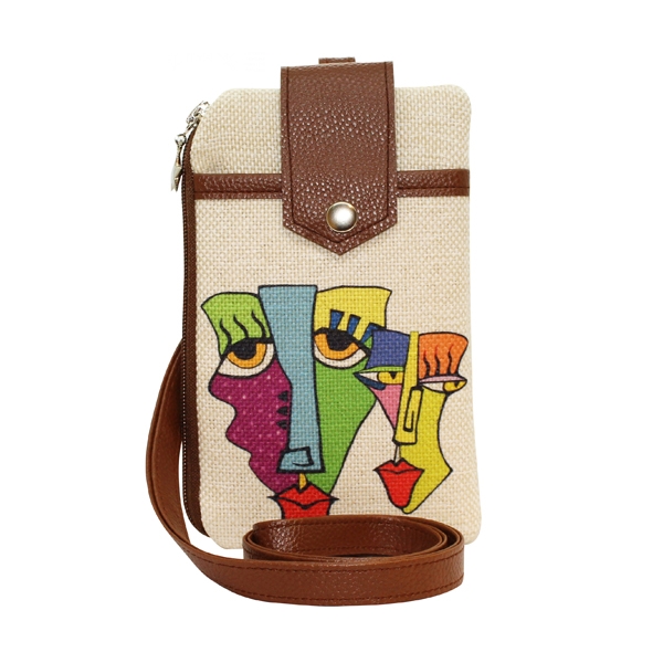 - Baskılı Keten Cep Telefon Çantası