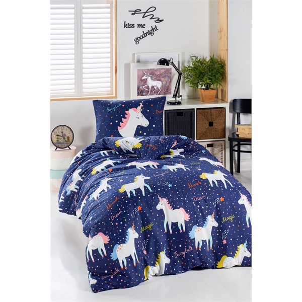 Ep-022031 Junior MagicUnicorn Lacivert Çarşafsız Nevresim Seti Tek Kişilik