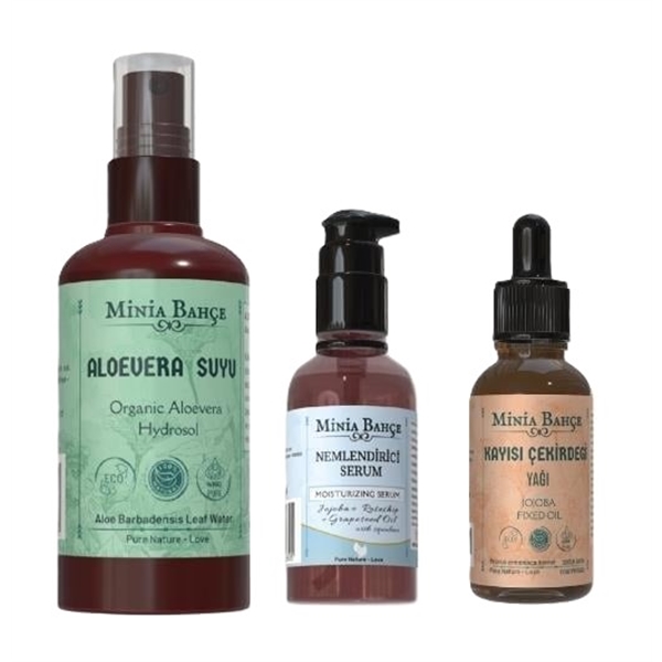 | - Set İçeriği; Aloe Vera Hidrosol (150 ml), Kayısı Çekirdeği Yağı (30 ml), Cilt Nemlendirici Serum |