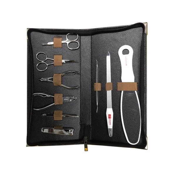 | - Solingen kalitesi ile deri çantalı manikür pedikür seti. |