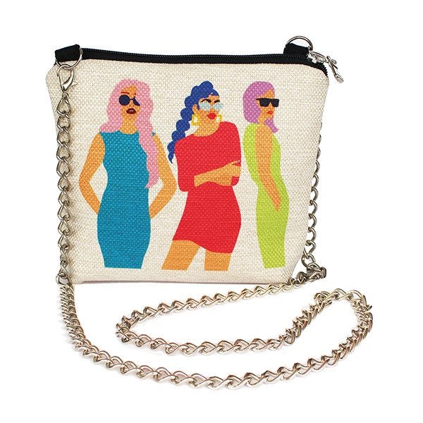 FR0439 Sosyetik Kızlar Baskılı Keten Kare Zincirli Çanta