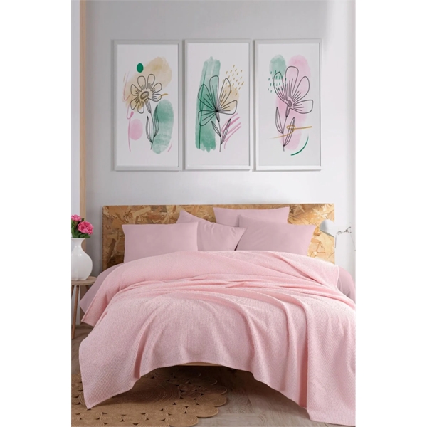 Ecotel Çift Kişilik Pudra Pembe Pike Örtü