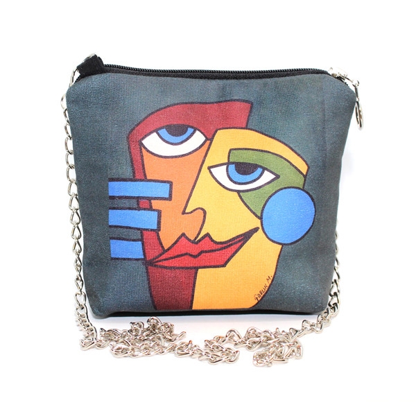 FR0414 Surat Baskılı Kare Zincirli Çanta