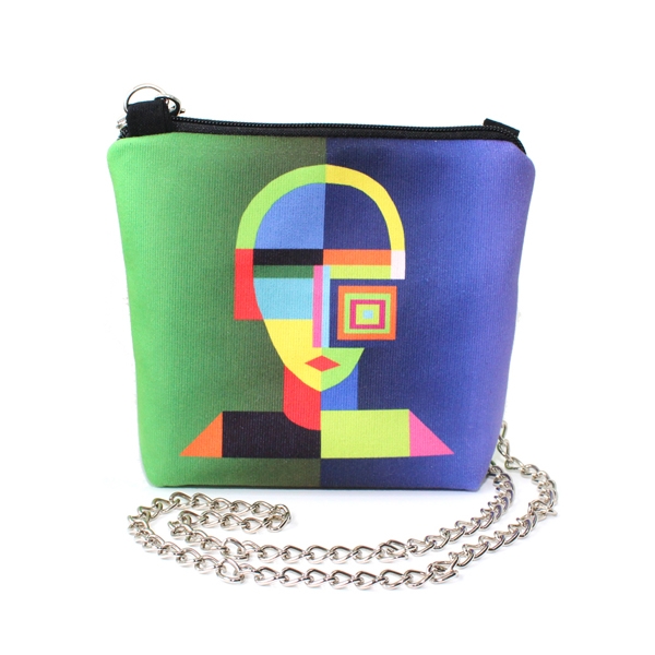 FR0442 Geometrik Kadın Baskılı Nubuk Kare Zincirli Çanta