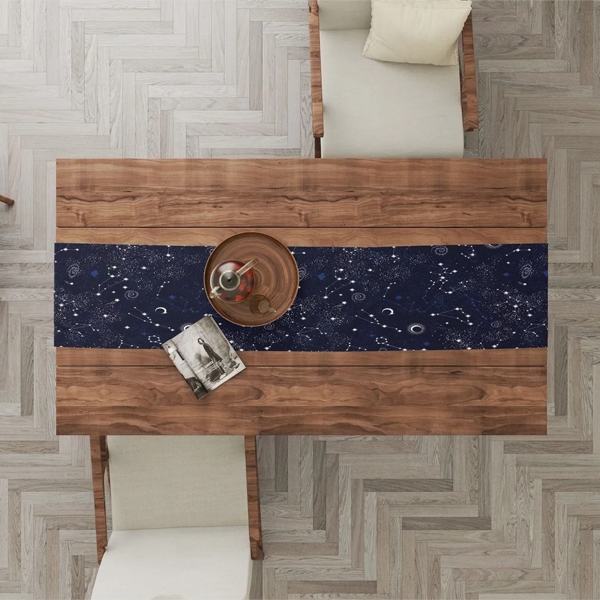 Modern Temalı Dijital Baskı Runner Lacivert 45 x 140 Masa Örtüsü