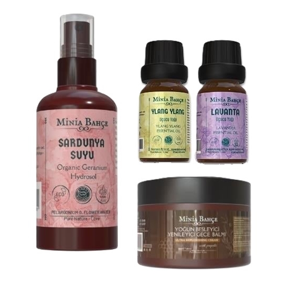| - Set İçeriği; Yoğun Besleyici & Yenileyici Gece Balmı, Lavanta Uçucu Yağı – 10 ml, Ylang Ylang Uçucu Yağı – 10 ml, Sardunya (Geranium) Hidrosol – 150 ml |