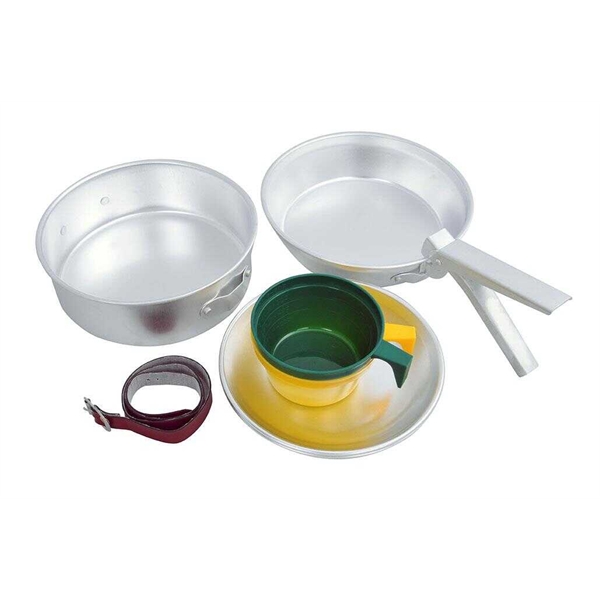 | - Ürün İçeriği: 1 Adet Tava (160 x 50 mm),1 Adet Çanak (180 x 4.5 mm),2 Adet Tabak (160 x 30 mm),2 Adet Plastik Bardak,1 Adet Tutma Sapı,1 Adet Sabitleme Kayışı |