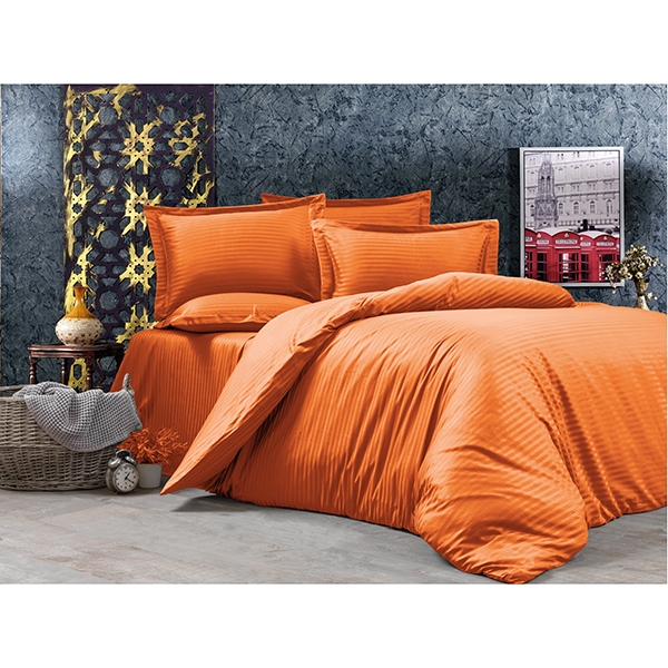 Elegant Çizgili Saten Turuncu Çift Kişilik Nevresim Takımı