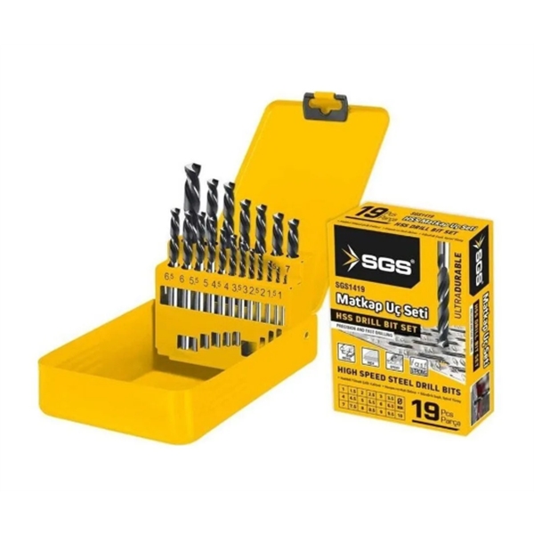 | - SGS 19 Parça HSS Matkap Ucu Seti, haddeli yüksek çelik kalitesi ve özel tasarımıyla profesyonel ve amatör kullanıcılara üstün performans sunar. |