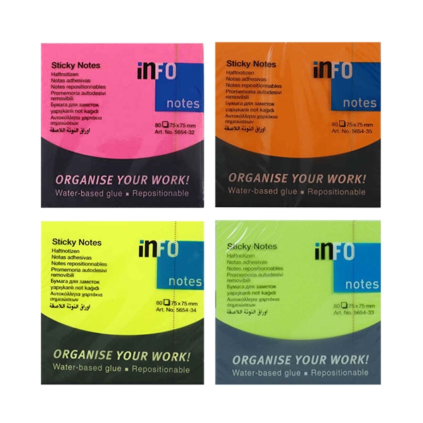 | - Info Notes Postit Yeşil: Boyut: 75 x 75 mm, Adet: 80, Renk: Fosfor Yeşil, Yapışkanlı |