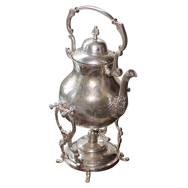 | - Bronz gövde üzeri gümüş kaplama ve kalem işçilik desenli bir kamineto. |