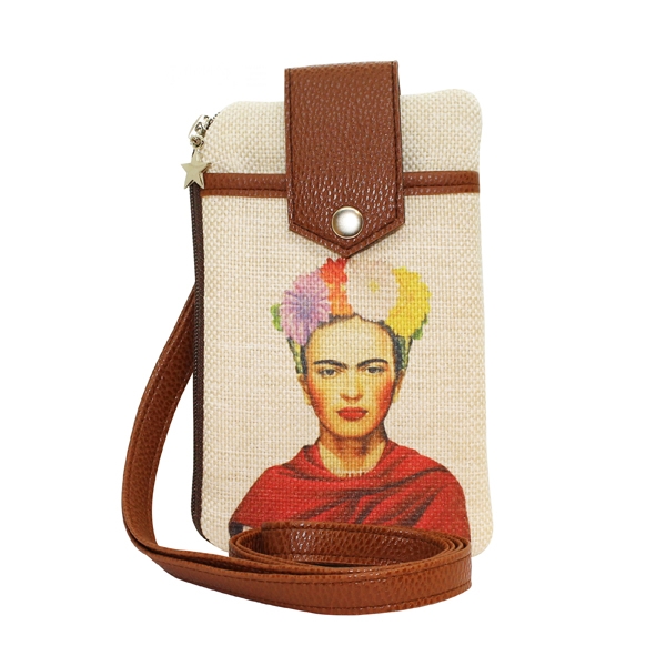 FR1801 Frida Baskılı, Deri Aparat, Keten Cep Telefon Çantası