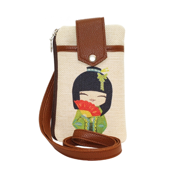 FR1803 Japon Bebek Baskılı, Deri Aparat, Keten Cep Telefon Çantası
