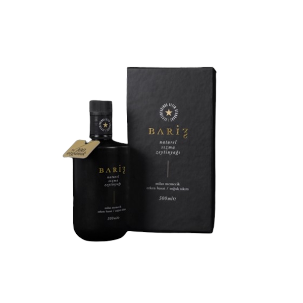 | - Bariz 500ml erken hasat soğuk sıkım naturel sızma zeytinyağı, AB Coğrafi İşareti korumalı Memecik zeytinini içeren, en az 400 fenol değerine ve ortalama binde 3 asitlik oranına ulaşan Bariz, Altın Standart'ın benersiz lezzetini sofranıza taşır. |