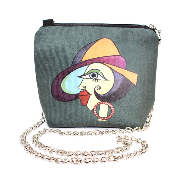 FR0427 Halka Küpeli Kız Baskılı Nubuk Kare Zincirli Çanta