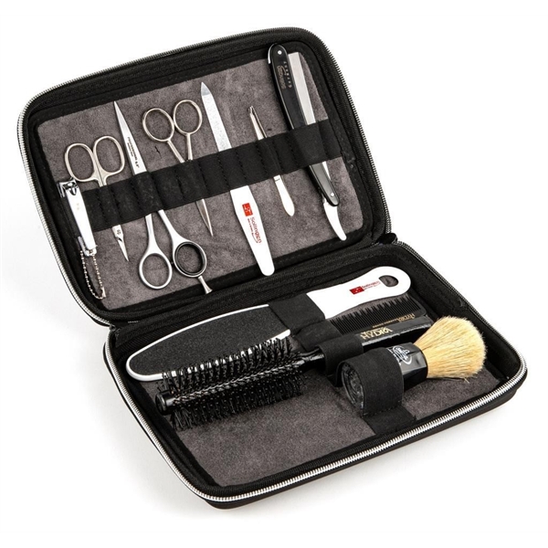 - 1 Adet Çanta , 1 Adet Tırnak Makası, 1 Adet Et Makası, 1 Adet Kaş Makası, 1 Adet Törpü, 1 Adet Cımbız, 1 Adet Ustura, 1Adet Tarak, 1 Adet Tıraş Fırçası, 1 Adet Ayak Törpüsü, 1Adet Berber Makası, 1 Adet Fön Fırçası