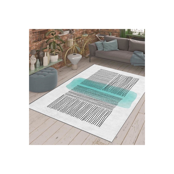 Kaymaz Taban Soyut Siyah Çizgi Desenli 100x140 cm Dijital Baskılı Halı
