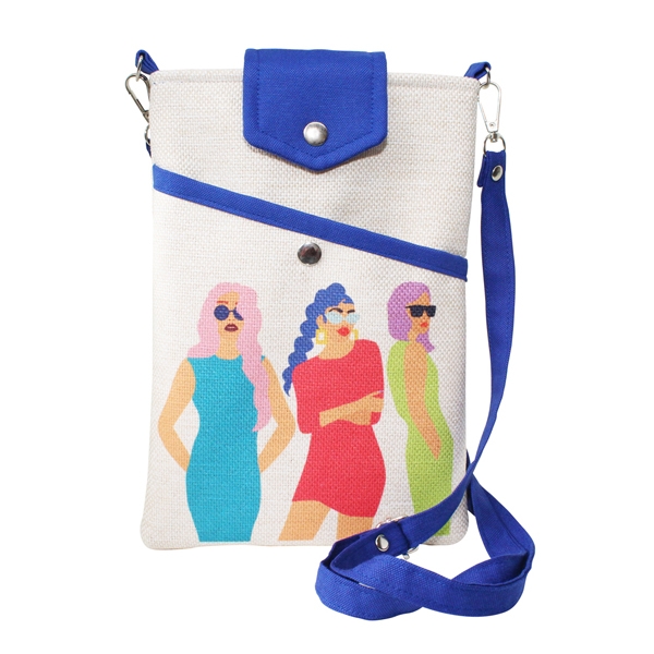 FR01908 Sosyetik Kızlar Baskılı Keten Kitap Çantası