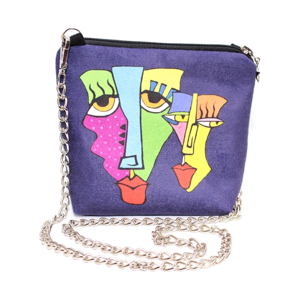 FR0426 İki Surat Baskılı Nubuk Kare Zincirli Çanta