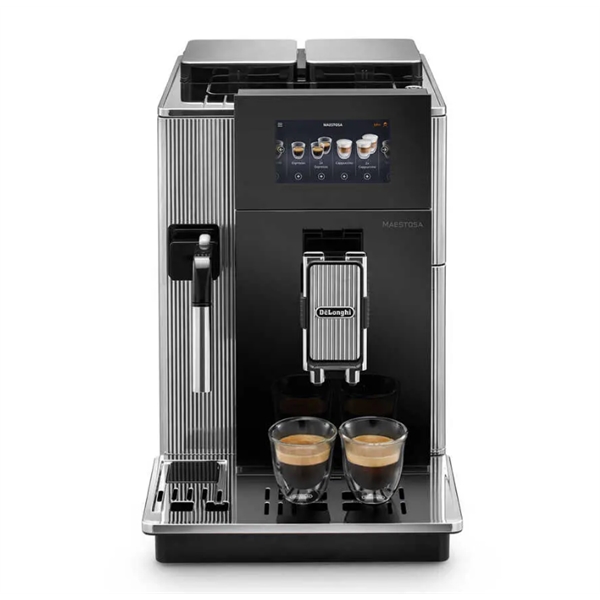 | - Maestosa, De’Longhi’nin başyapıtıdır. Maestosa, kahve aroması ve estetiği açısından yeni standartlar belirler. Saf İtalyan tasarımı: Yüksek kaliteli camdan yapılmış modern, çok parlak cilalı bir ön yüz, “şeritli tasarıma” sahip yüksek kaliteli, paslanmaz çelikle yan kısımlara çerçevelenmiştir |