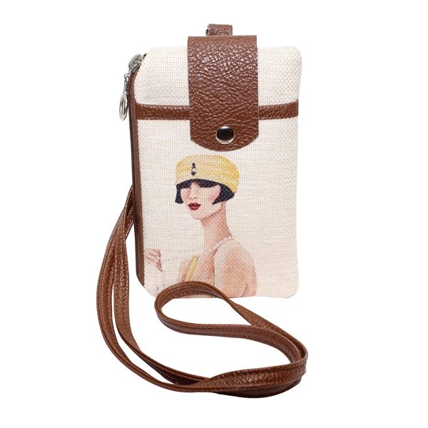 - Baskılı Keten Cep Telefon Çantası