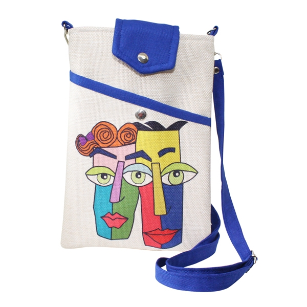 FR1906 Renkli Aile Baskılı Keten Kitap Çantası
