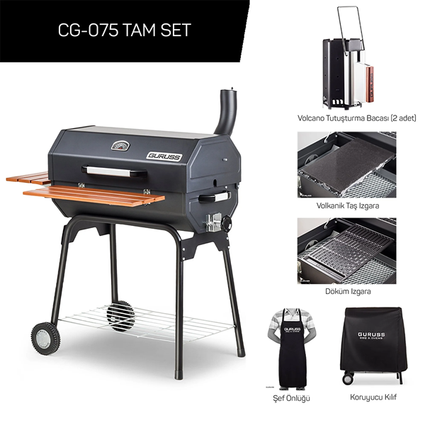 | - Ürünün baz modelinde olan 3 adet tel ızgarası ile birlikte 1 adet döküm ızgara, 1 adet volkanik taş ızgara ve 2 adet Volcano tutuşturma bacası dahildir |
