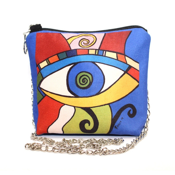 FR0411 Göz Baskılı Kare Zincirli Çanta
