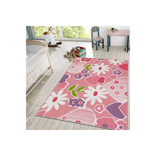 HMIGD-23 Dijital Baskı Flowers Pembe 120x180 Çocuk Odası Halısı