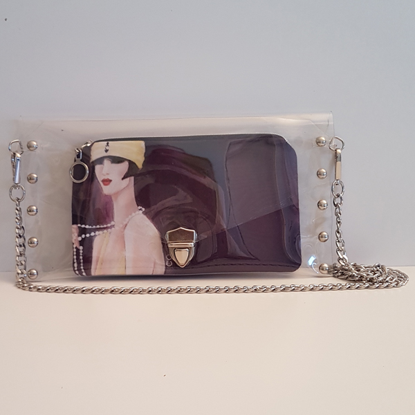 | - Şeffaf Çantalı Baskılı Nubuk Clutch |
