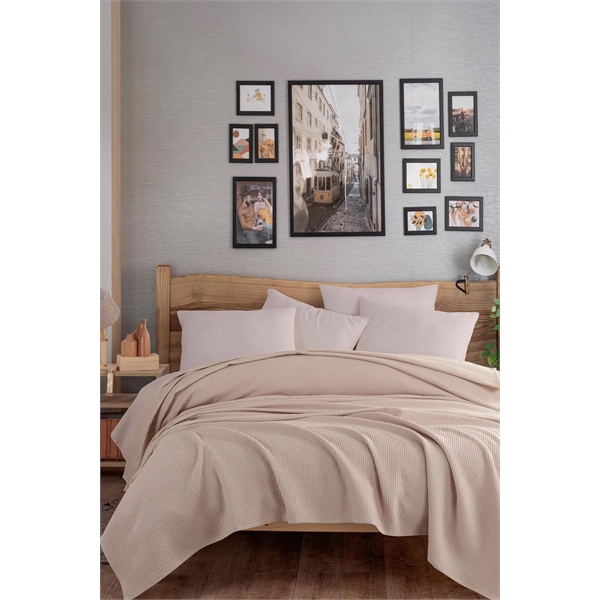 Ecotel Çift Kişilik Koyu Bej Pike Örtü