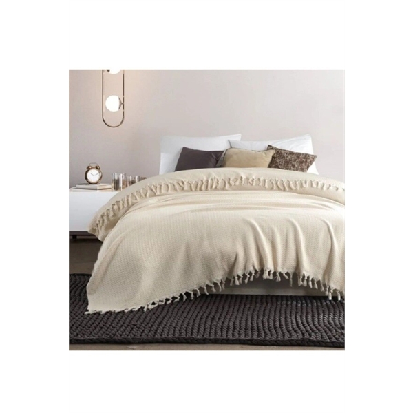 Saçaklı Krem Çift Kişilik Pamuklu Pike