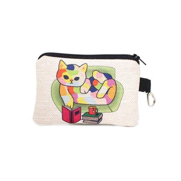 FR1041 Koltukta Yatan Kedi Baskılı Keten Cüzdan
